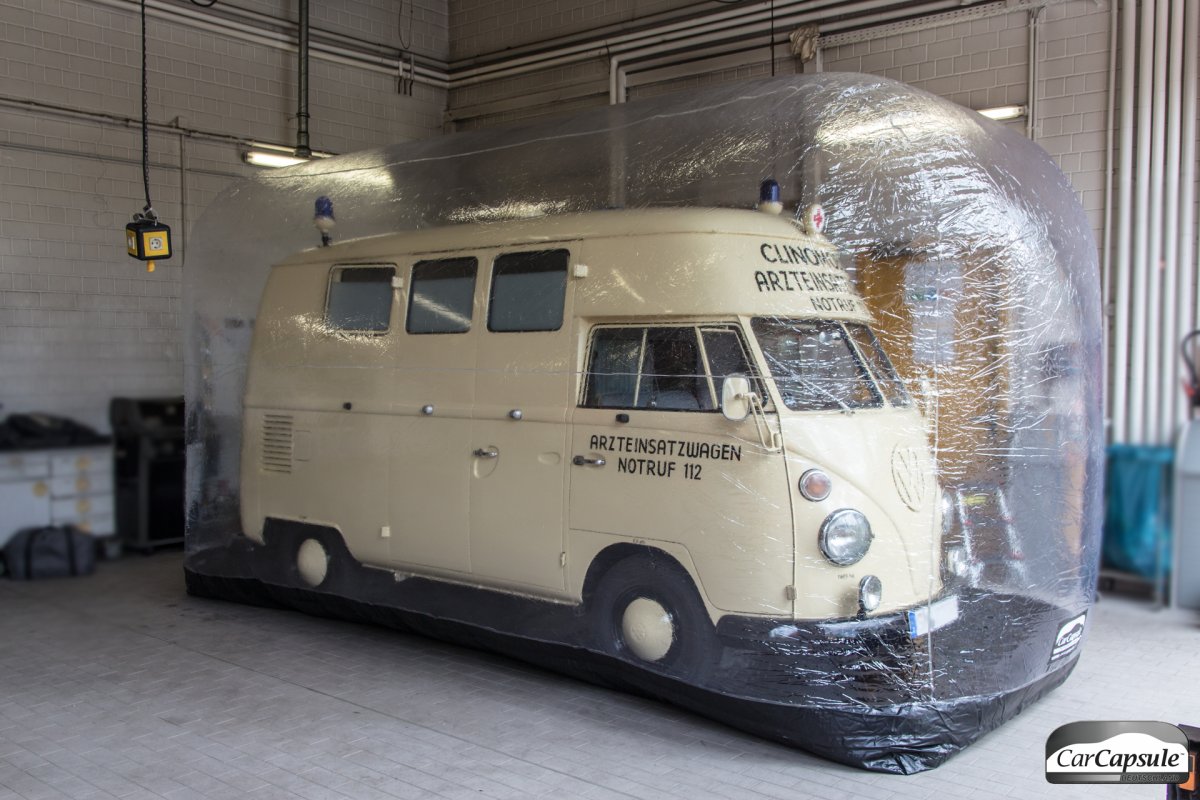 Um diesen Wertvollen Schatz auch adäquat zu schützen haben wir uns nun damit befasst eine maßgeschneiderte CarCapsule zu entwickeln, die auch der enormen Höhe des Fahrzeugs (Mit Blaulicht etc.) gerecht wird. Dieser Herausforderung haben wir uns gern gestellt und auch gemeistert. Bei der Erstmontage haben wir uns auch aufgrund des besonderen Fahrzeugs gern bereit erklärt mit anzupacken und eine Einweisung vor Ort zu geben. Dabei wurden wir sehr herzlich von dem gesamten Team der Rettungswache Gummersbach empfangen. Von nun an steht dieses fantastische Fahrzeug in einem Maßanzug aus dem Hause CarCapsule und sorgt somit für einen langen Erhalt dieses wichtigen Stück Geschichte unserer Republik. Vielen Dank noch einmal an das gesamte Team der Rettungswache in Gummersbach und allzeit eine gute und sichere Fahrt!